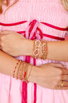 Sprinkle some love on your Valentine with this charming beaded bracelet. Each design is one-of-a-kind, featuring a playful mix of 2.5mm and Czech glass beads in varying patterns. Crafted with 14K gold-filled components and durable elastic string, it's waterproof, workout-proof, and tarnish-proof—ready for everyday wear and adventure. Handstrung with care in College Station, Texas, using US-sourced materials. A sweet, meaningful gift that celebrates love in the most delightful way.