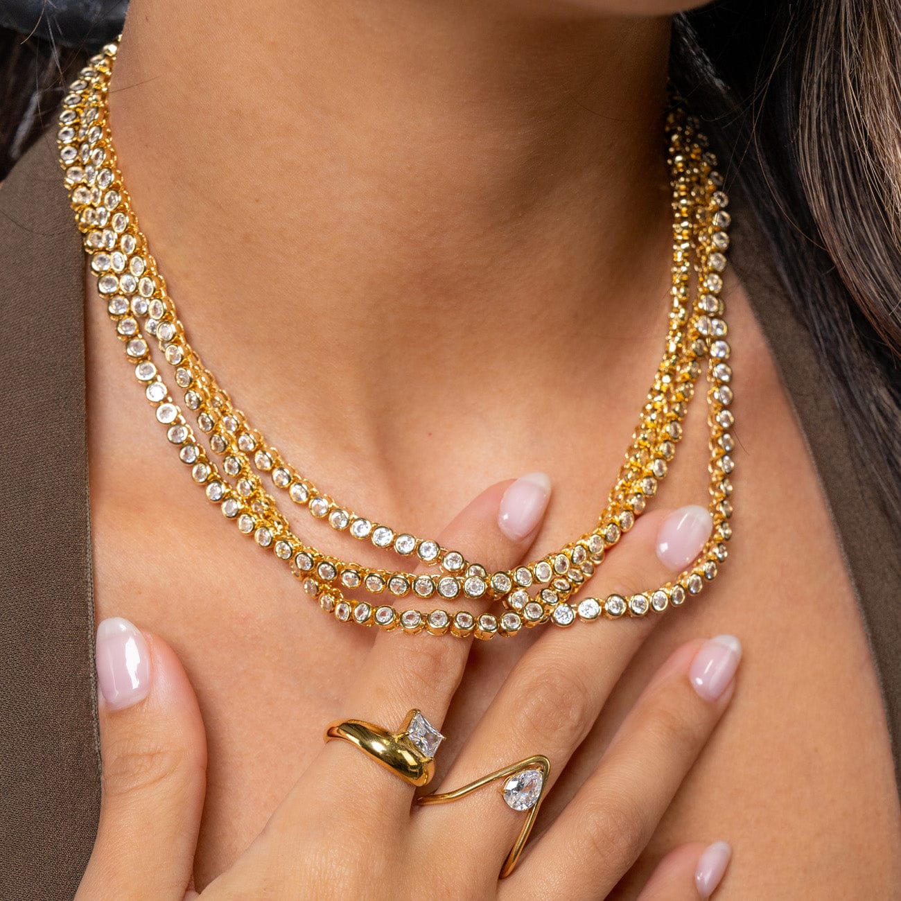 Sparkle every single day with the Mali Tennis Necklace—your new non-negotiable accessory. Strung with brilliant round CZ stones on a gold-filled sterling silver chain, this stunner delivers that coveted luxury glow without the luxury price tag. Its sleek, timeless design transitions effortlessly from boardroom to brunch, and plays beautifully solo or layered with your other favorites. Because life's too short for boring necklaces.