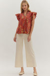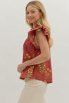 Embrace breezy charm with the Cameron Brick Floral top! Its delicate botanical print dances on flutter sleeves, while the pintuck bodice and embroidered trim add sweet, detailed touches. The flattering V-neck invites a playful, fresh look perfect for sunny days and casual adventures.