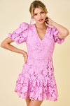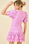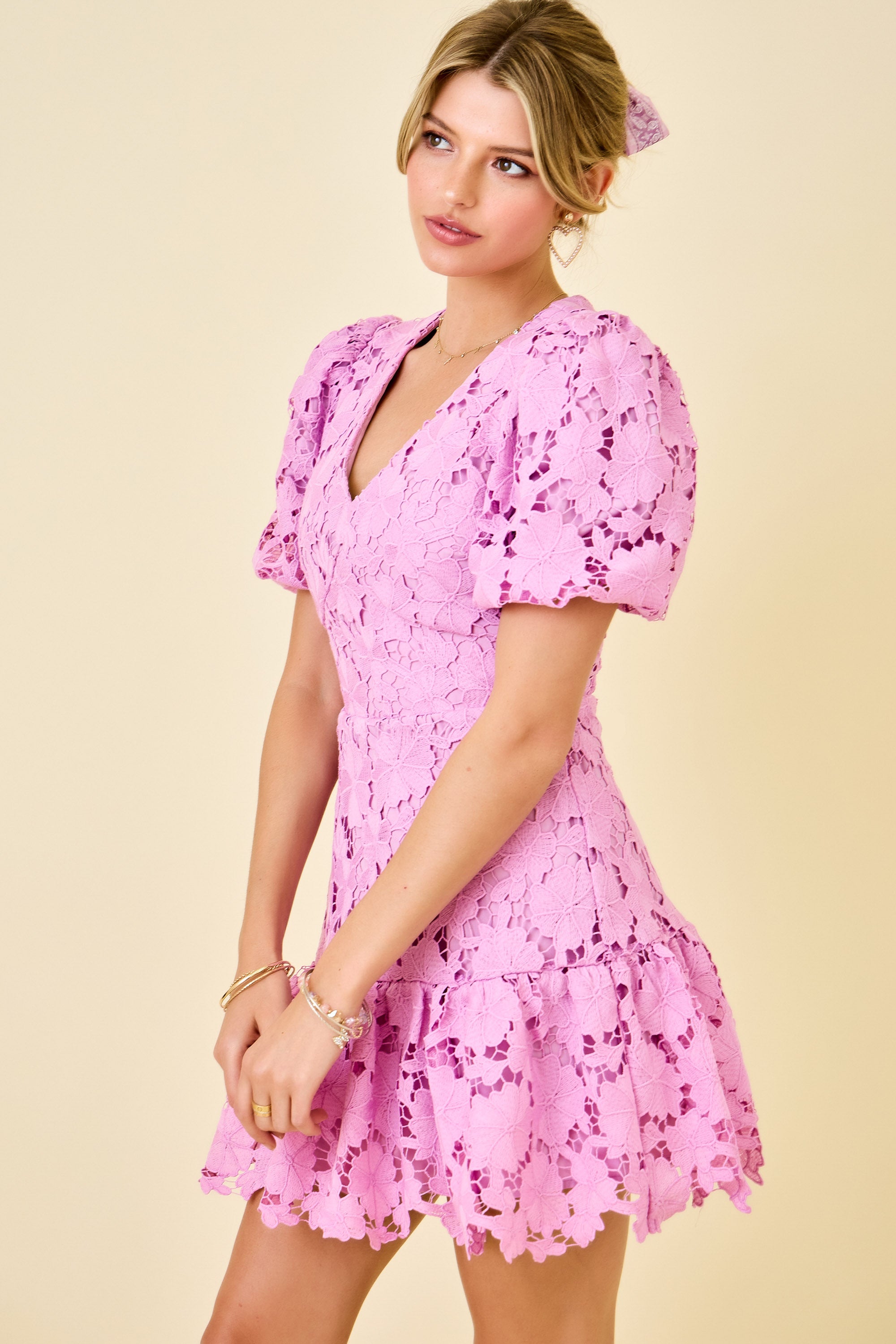Stunning lace fabric in orchid, the Lyla Lace Dress is the perfect dress for Easter, Mother's Day or your graduation photo shoot. The flirty shirt and slight puff sleeve add femininity and a touch of glamour. You won't want to miss this.