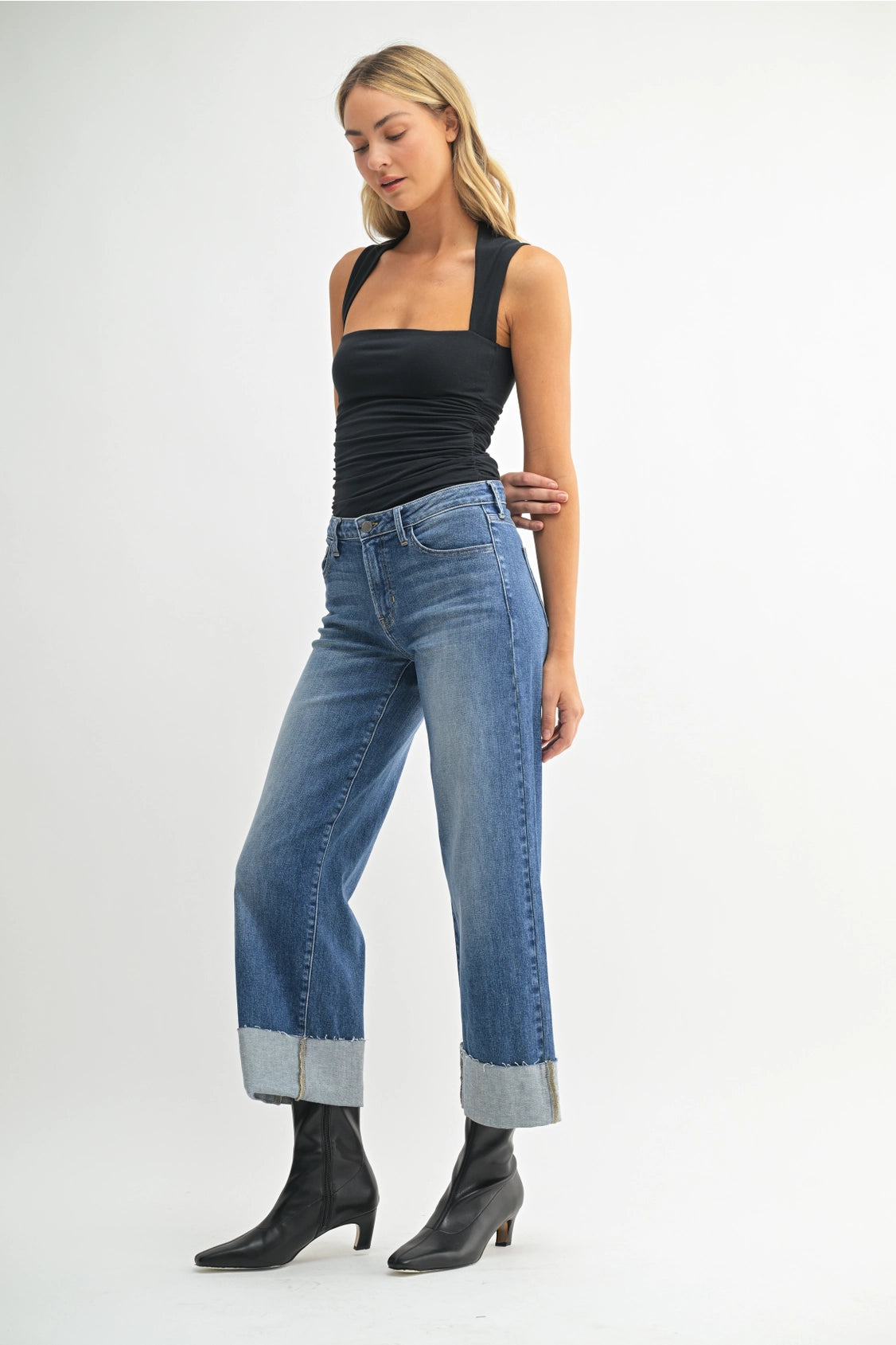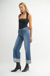 Step out in style with the Gwen Cuffed Cropped Denim! These jeans mix vintage vibes and modern cool with a mid-rise waist and relaxed wide-leg fit. The raw scissor-cut hem adds plenty of edge, while the neat cuff keeps things playful and polished. Crafted from a comfy cotton blend and made in the USA, they’re perfect for chilled days or making a statement. Toss them on, wash cold, and lay flat to dry—easy and effortless style!