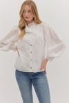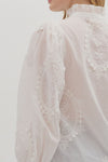 Elevate your everyday style with the Morgan Embroidered Blouse in crisp white. This charming long-sleeve button-up features delicate embroidered details that add a touch of personality to any outfit. Perfect for dressing up casual looks or layering over your favorite tee, the Morgan brings effortless sophistication with a playful twist. Versatile, timeless, and undeniably chic—your new wardrobe essential awaits!