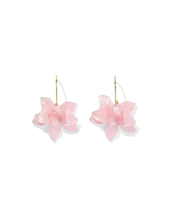 The Rosalie Earrings in Pink bring a soft, romantic touch to your everyday and special-occasion looks. Featuring layered translucent petals in a delicate blush pink hue, these floral drops feel airy, feminine, and effortlessly chic. Finished with a gold-tone hook, they move beautifully with every step.