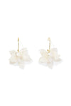 The Rosalie Earrings in White bring a soft, romantic touch to your everyday and special-occasion looks. Featuring layered translucent petals in a delicate pearlized white hue, these floral drops feel airy, feminine, and effortlessly chic. Finished with a gold-tone hook, they move beautifully with every step.
