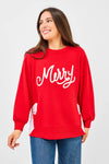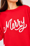 Get festive and fabulous with the Merry Little Bow Sweatshirt! This cozy red crewneck features "Merry" in crisp white across the chest, accented by sparkling white flat bows on the sides. Perfect for holiday errands or cozy gatherings, its long sleeves keep you warm while adding a playful touch to your seasonal style.