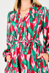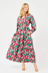 Step into playful elegance with the Twist Of Pink Midi Dress. Featuring a charming ruffle split V-neckline and long sleeves with button cuffs, this dress effortlessly combines flirtatious details with timeless style. The removable tie belt lets you shape your look, adding a fun twist to your silhouette while keeping things lovely and feminine. Perfect for celebrating in style!