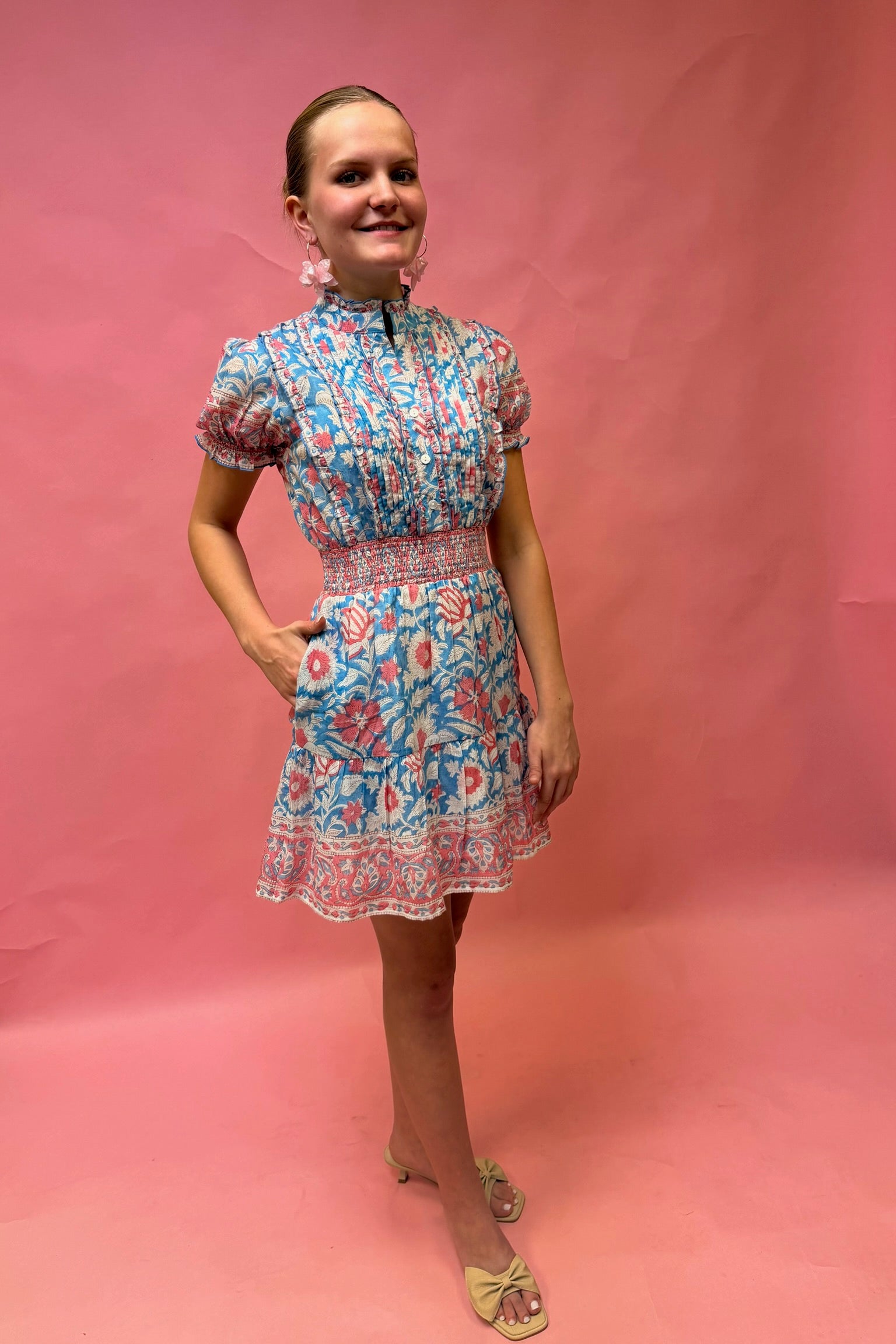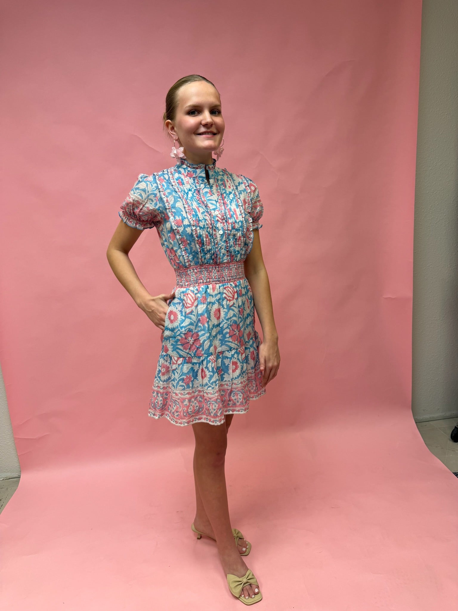 The Ryna Mini Dress combines effortless style with comfort for warm-weather wear. Crafted from lightweight cotton, this short dress features a flattering cinched waist and charming button detailing in a fresh blue and pink colorway. Ideal for spring and summer occasions, it's a versatile piece that transitions seamlessly from casual outings to relaxed gatherings!