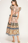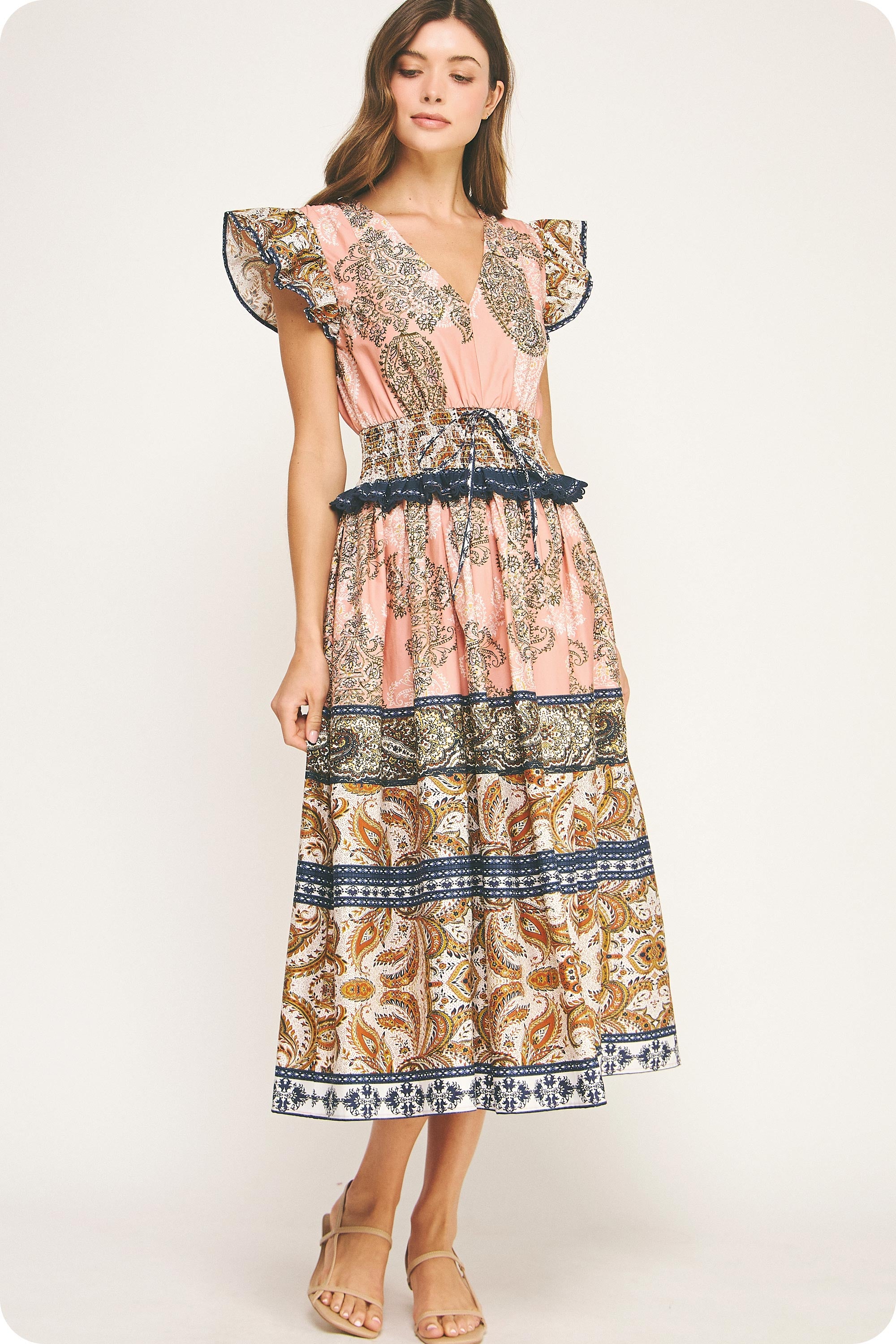 Embrace the cozy charm of fall with the Sugar Sugar Maxi Dress. This playful piece pairs warm salmon and navy hues in a flattering maxi length, featuring fluttery short sleeves and a flirty v-neckline. The smocked waist adds a comfy, figure-hugging touch, while delicate lace trim brings a sweet, feminine finish. Perfect for breezy autumn days and effortless style!
