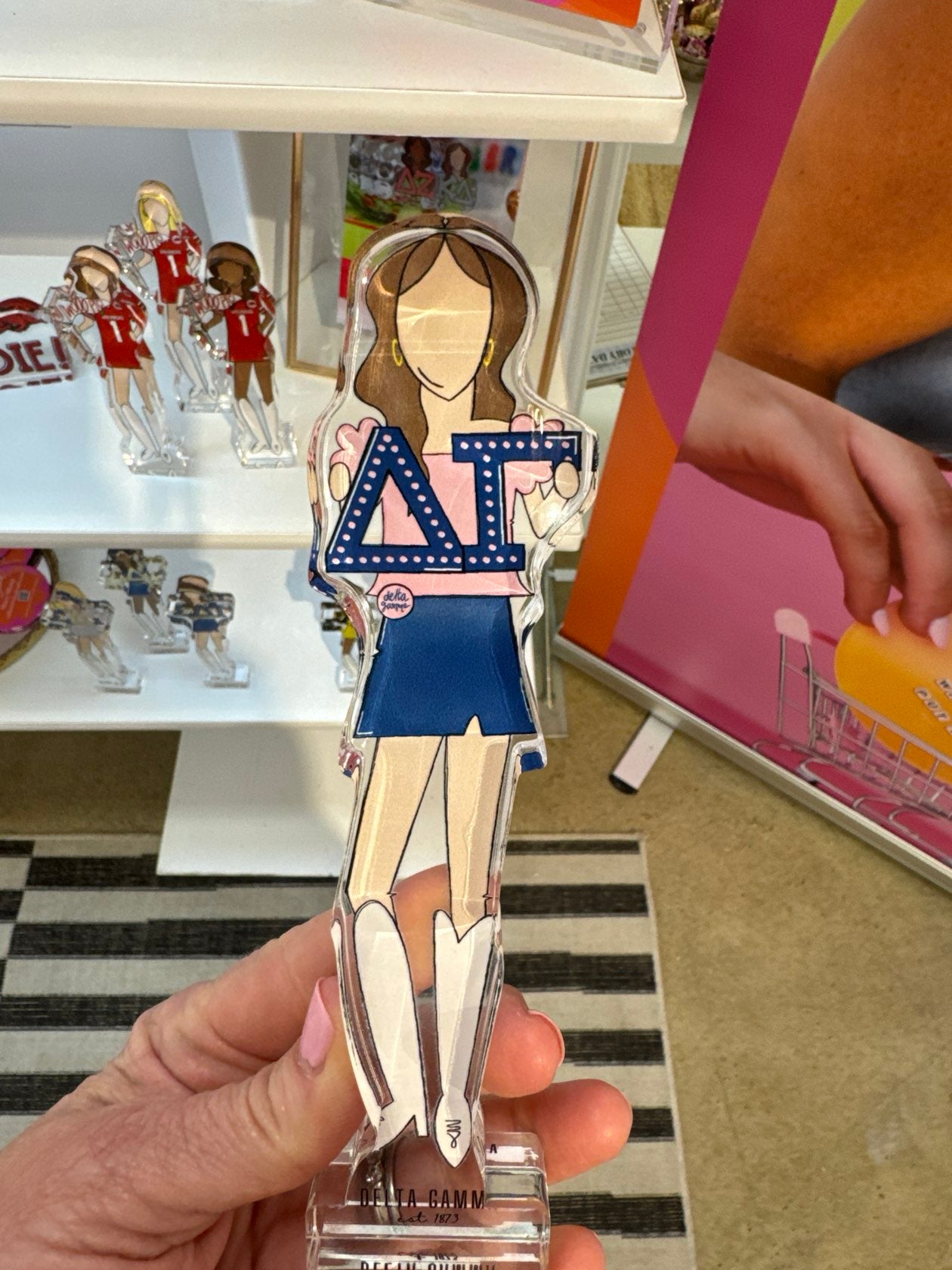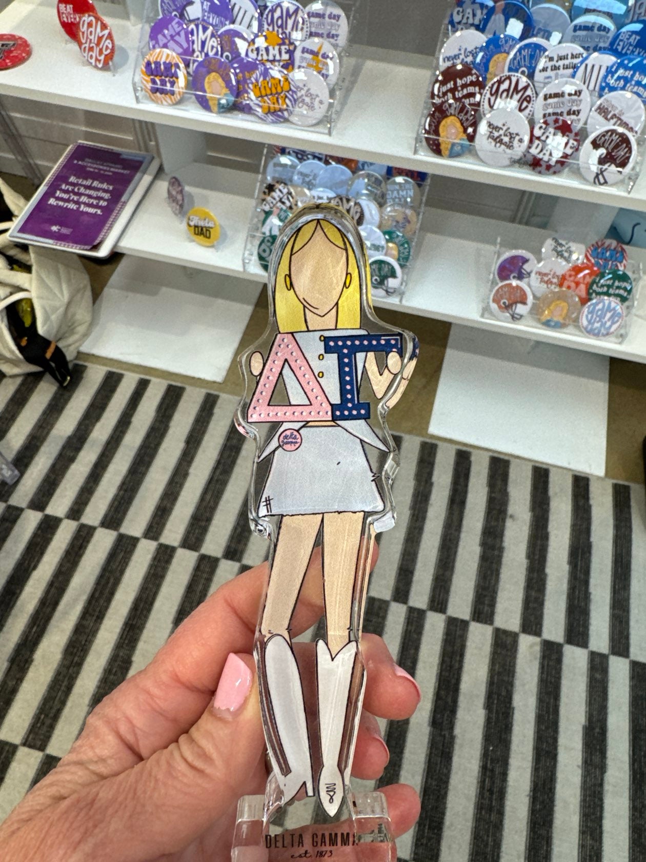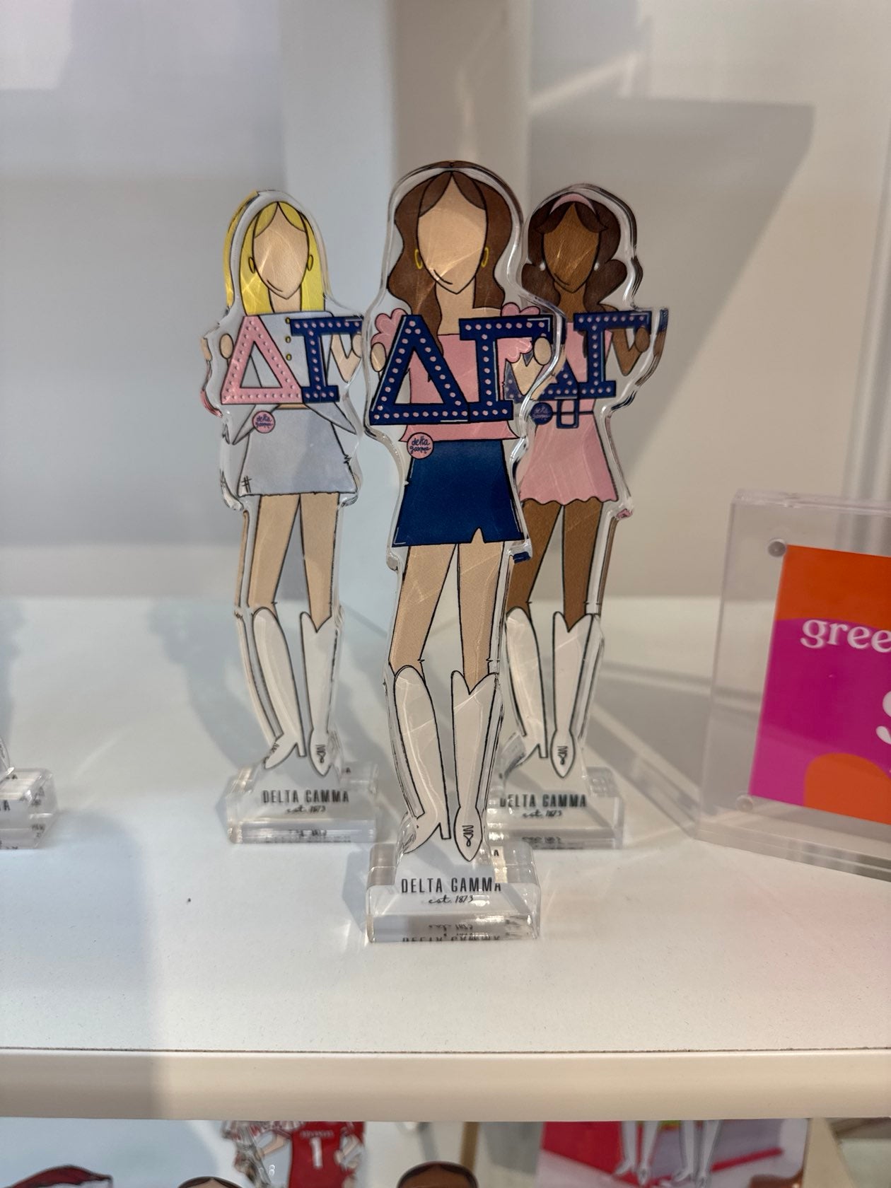 Show off your Delta Gamma pride with this stylish acrylic block! Perfect for adding a touch of sorority spirit to your dorm room, apartment, or any space needing a pop of Greek life charm. This high-quality acrylic piece makes a bold statement while fitting perfectly on bookshelves, desks, or mantles. Ideal as a gift for Bigs and Littles or as a keepsake for yourself, this DG shelfie is a must-have decor piece for any member of Delta Gamma.
