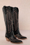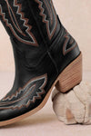 Step into the spotlight with the Tess Western Boot—where timeless cowboy charm meets contemporary flair. The pointed toe and low block heel deliver both comfort and a flattering silhouette, while convenient side pull tabs make slipping them on effortless. Whether you're pairing them with your favorite jeans or dressing up a night-out ensemble, these boots are your ticket to looking effortlessly cool all season long.