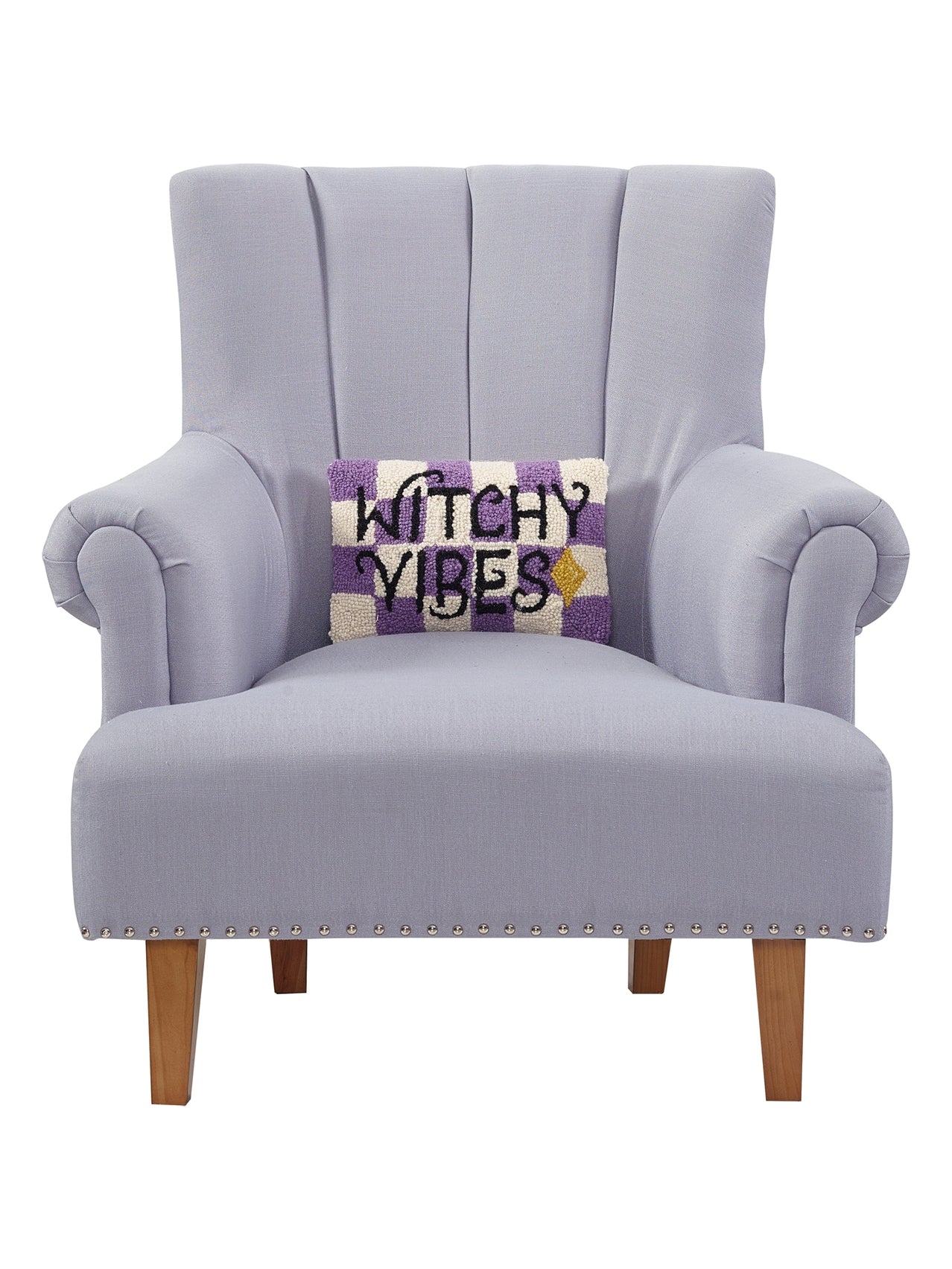 Add a touch of spookiness to your Halloween decor with our Witchy Vibes Purple Check Pillow. Featuring a white and purple checkered design, this pillow is both haunting and charming. Enhance your home's fall aesthetic with this must-have accessory."