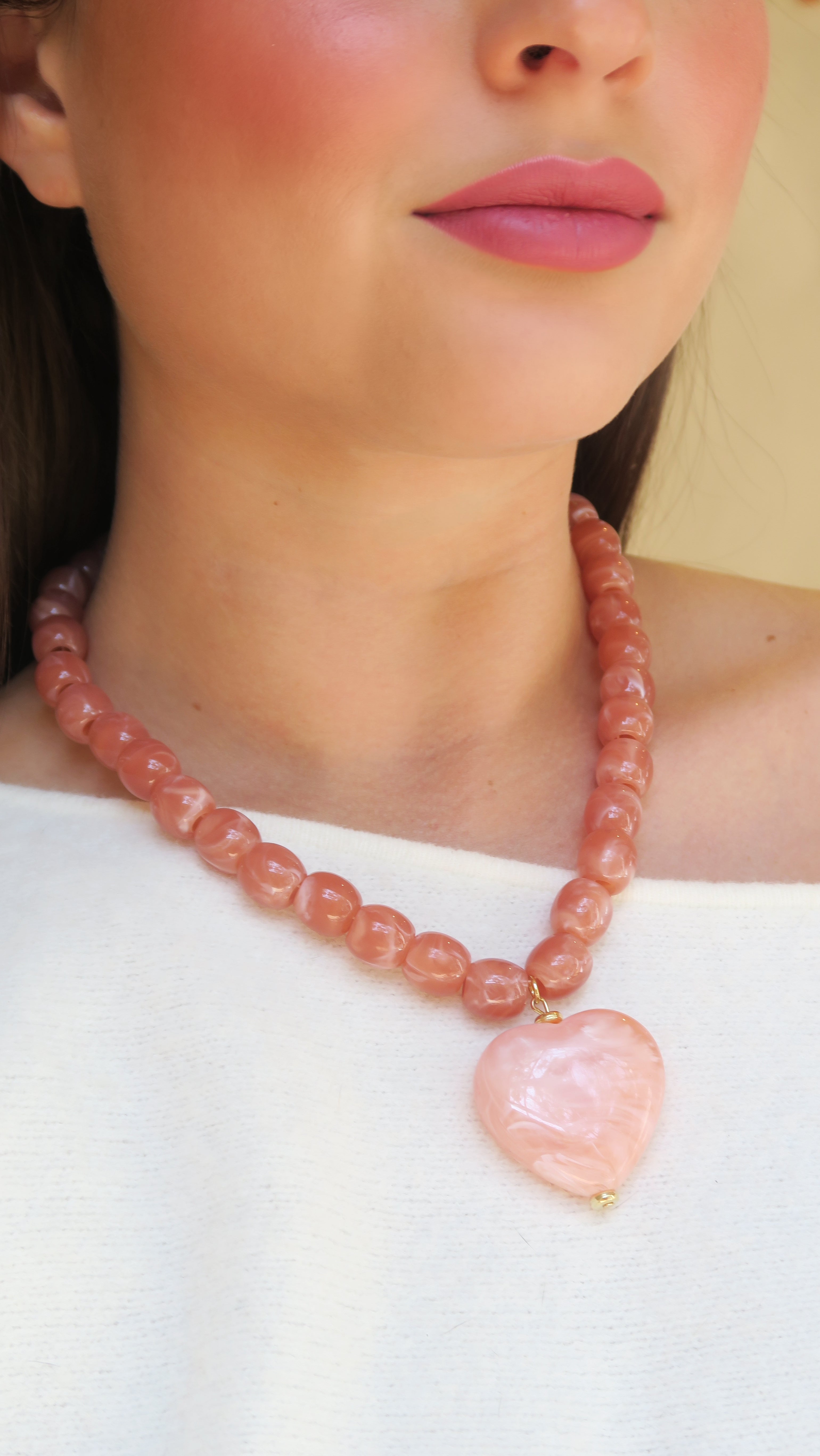 Spread the love with this charming Amour Necklace! Featuring vibrant pink resin beads paired with a delightful resin heart pendant, this playful piece brings instant joy to any outfit. The gold-plated lobster clasp ensures durability, while the adjustable 18" chain with 3" extender lets you customize your fit. The 1½" heart pendant makes a sweet statement without overwhelming your look. Perfect for layering or wearing solo, this necklace captures that feel-good vibe you've been craving.