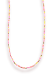 Slip on springtime vibes with the Buttercup Sprinkle Necklace—a playful mix of 2.5mm orange, pink, and yellow Czech glass beads that dance along 14K gold-filled elastic. No clasp needed; just stretch and wear. Each necklace is one-of-a-kind thanks to its unique bead pattern. Handstrung in College Station, Texas, this stretch beauty is waterproof, workout-proof, and tarnish-proof, so you can wear it anywhere your day takes you.