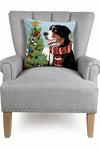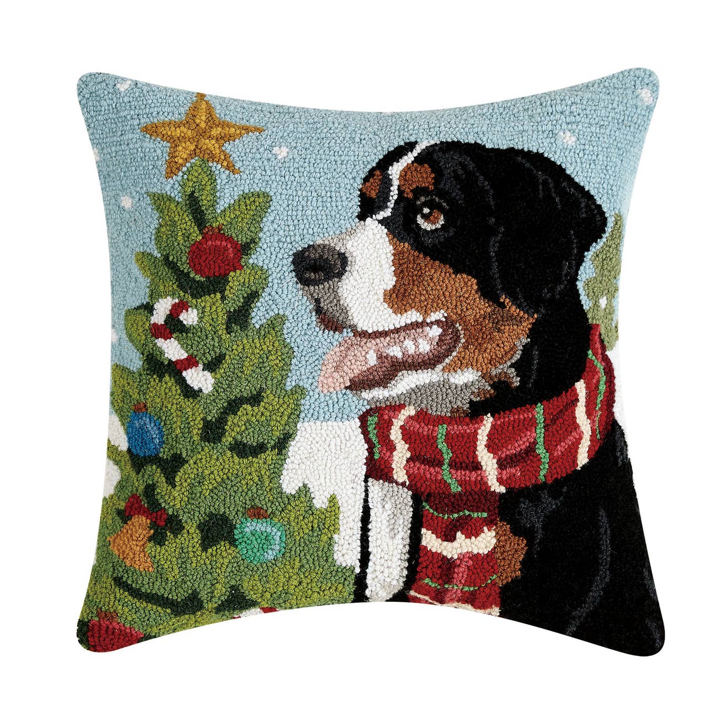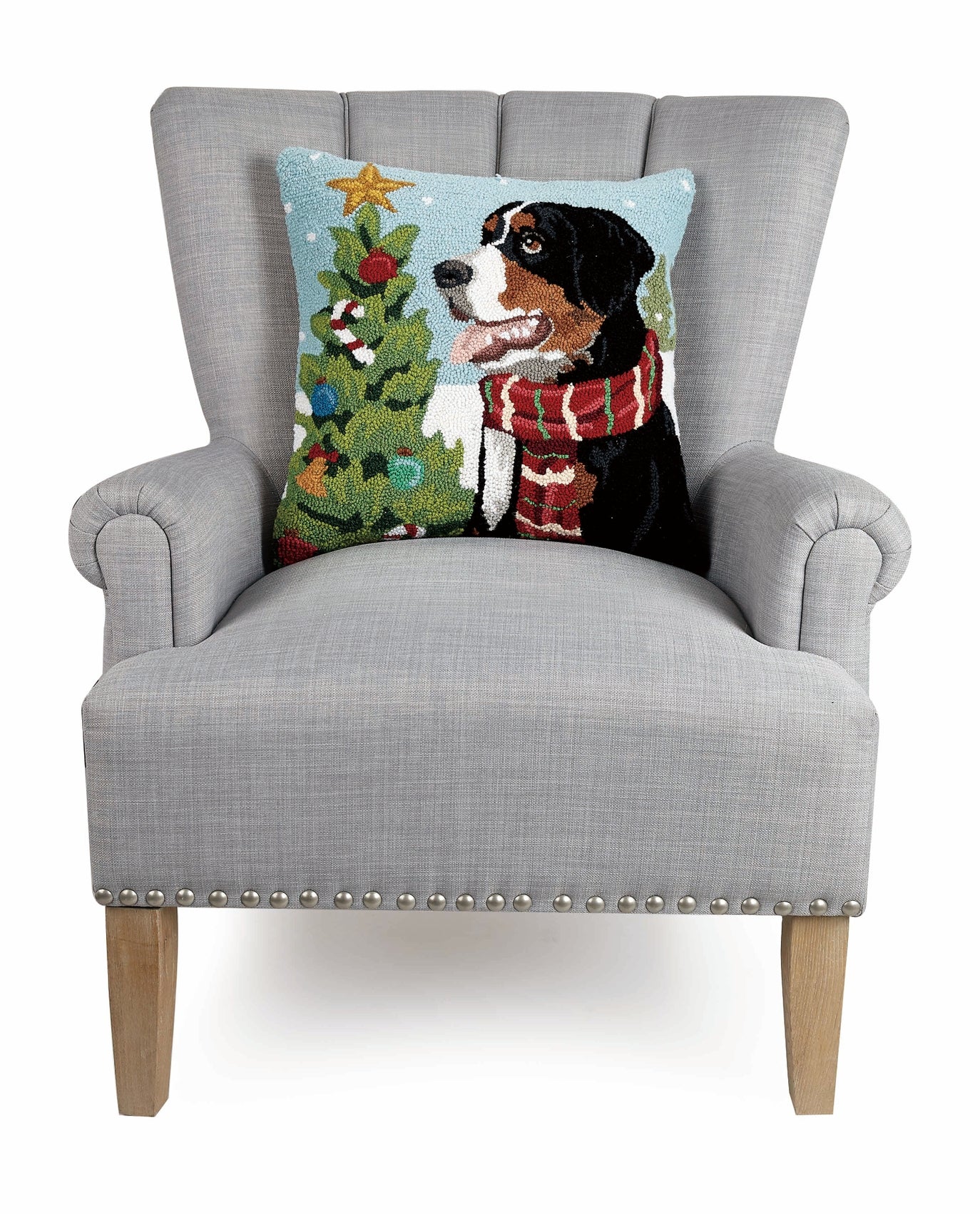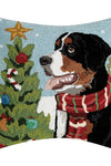 Celebrate the season with the playful Bernese Mountain Dog Holiday Pillow. Crafted with a 100% wool hooked front and a soft 100% velvet backing, this 18x18" throw pillow brings cozy charm to your holiday décor. Featuring a delightful design by PEKING HANDICRAFT, it includes a polyester insert and zipper closure for easy fluffing and cleaning. Perfect for adding festive spirit or gifting to dog lovers this winter!