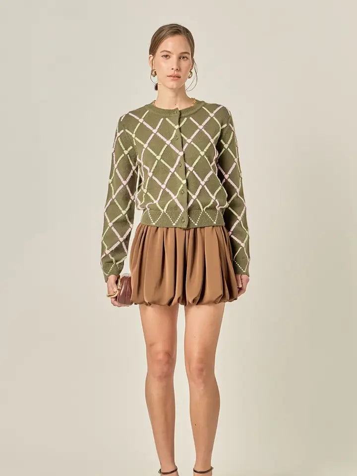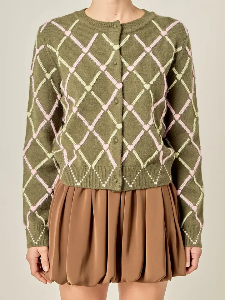 Layer up in style with the Jaded Heart Sweater, featuring an eye-catching lattice design that adds texture and visual interest to your cold-weather rotation. This cozy green cardigan is your go-to for chilly days—whether you're running errands or settling in for the season. The intricate lattice pattern brings a touch of sophistication to casual comfort, making it easy to dress up or down. Perfect for layering over your favorite tees or wearing solo when the temperature drops!