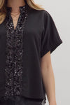 Betsey Sequin Y Top | Black