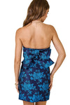 Celebrate every moment in this charming sleeveless mini dress featuring a stunning brocade pattern in navy and royal blue. The fitted silhouette is finished with an elegant flat bow detail at the back, adding a touch of sophistication and playful flair. Perfect for parties, special occasions, or whenever you want to feel fabulous. This dress brings joy to your wardrobe with its rich colors and timeless appeal.