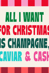 Celebrate the season with the "All I Want For Christmas Is Champagne Caviar and Cash" cocktail napkins! These festive beverage napkins brighten up any holiday table while catching spills with their soft, absorbent layers. Perfect for parties and gatherings, their fun design adds a spirited touch to your celebration. Ideal for gifting to hosts or simply decking out your own festivities. Features: Soiree Sisters holiday-themed disposable napkins, 20 per pack, 3-ply, measuring 5" x 5".