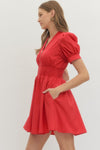 The Hanna dress combines timeless elegance with modern practicality. This mini features a graceful V-neckline and voluminous puff sleeves that frame the shoulders with understated charm. The smocked waist creates a refined silhouette, while the front-zip closure ensures easy styling. Functional side pockets and a full lining complete this versatile piece—ideal for layering through seasons or wearing solo during warmer months. A sophisticated staple for any discerning wardrobe.