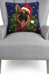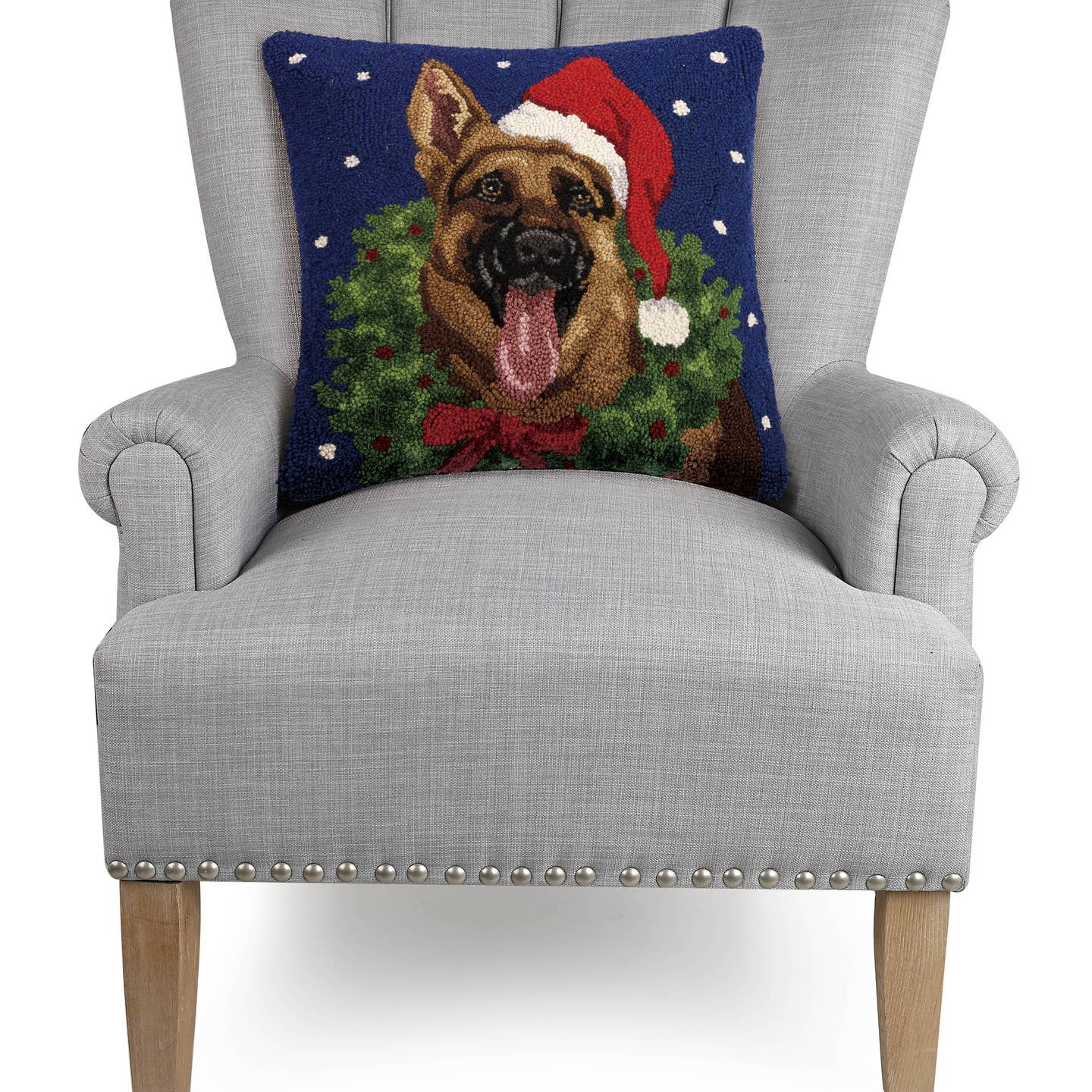 Add a festive touch to any space with this 18" x 18" wool hook pillow featuring a cheerful German Shepherd wearing a Santa hat and wreath. Crafted from 100% wool, it’s a cozy and charming gift that’s perfect for the German Shepherd lover in your life. Brighten up the holidays with this playful and heartwarming accent!