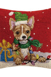 Add a festive touch to your holiday decor with this playful 16x16 accent pillow featuring a charming Holiday Chihuahua wearing a green hat and scarf, surrounded by Christmas lights and a gift. Crafted with a 100% wool hooked front and soft velvet backing, it includes a polyester insert with a zipper closure for easy care. Perfect for brightening up any room or gifting to a loved one this winter season.