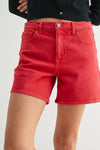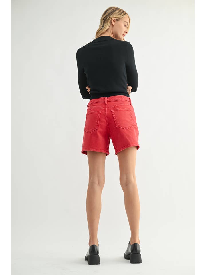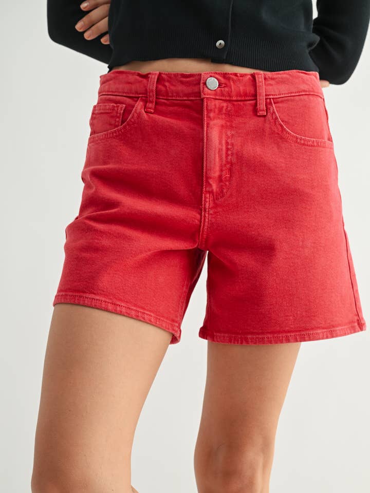 The Layla Denim Short in vibrant red offers a refined yet playful look, ideal for a stylish day by the lake. Crafted to fit true to size, it combines comfort with a sleek silhouette, making it a versatile addition to your summer wardrobe.