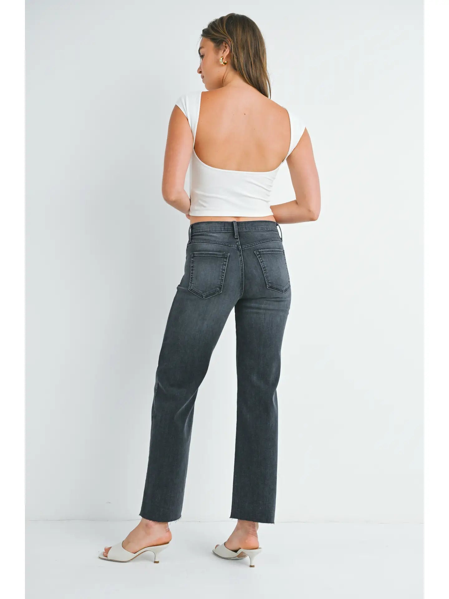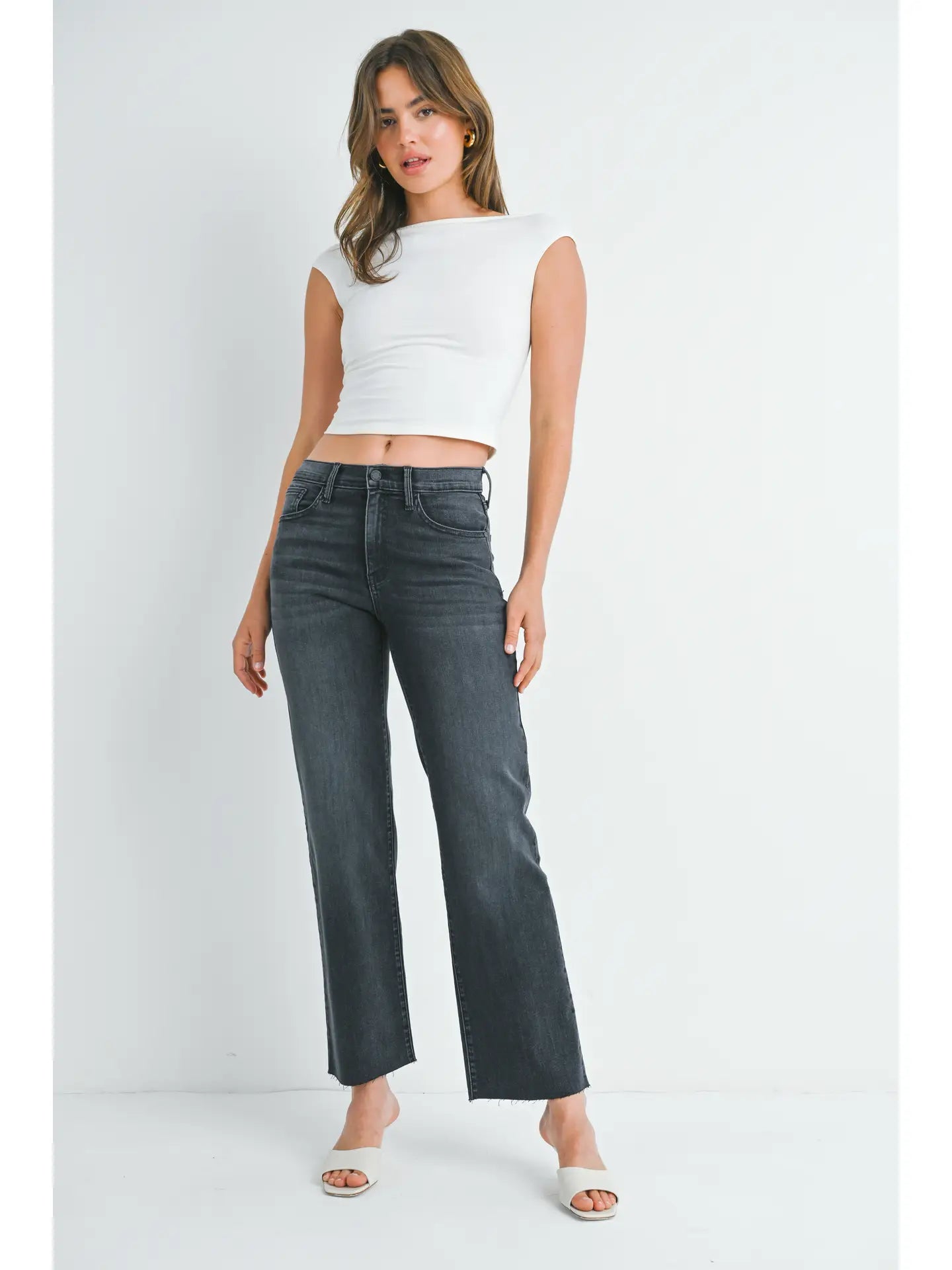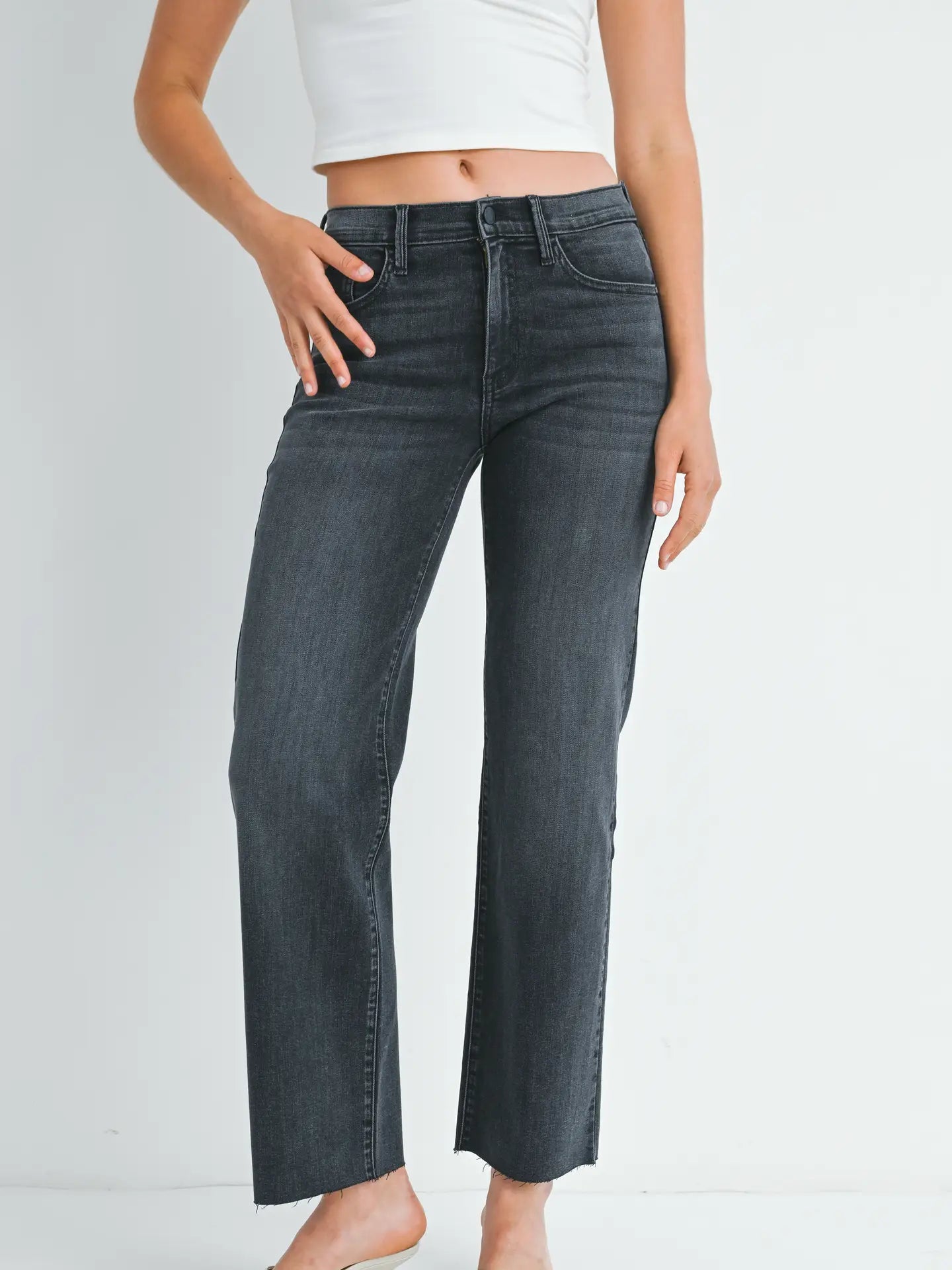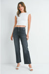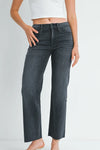 Step out boldly in the Macy Grey Washed Denim, featuring a slim Palazzo silhouette that balances comfort with striking style. The scissor-cut hem adds an edgy twist to the full-length, washed grey denim, making these pants a fearless statement piece for any wardrobe.