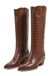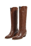 The LeAnn boot brings playful edge to your everyday rotation. Crafted from vegan leather with a textured croc-look finish, this chocolate-hued style pairs bold attitude with practical charm. The right boot features a hidden lip gloss pocket and credit card slot—because your essentials deserve a stylish home! Perfect for those who refuse to choose between fashion and function! Runs big. Size down if need be.