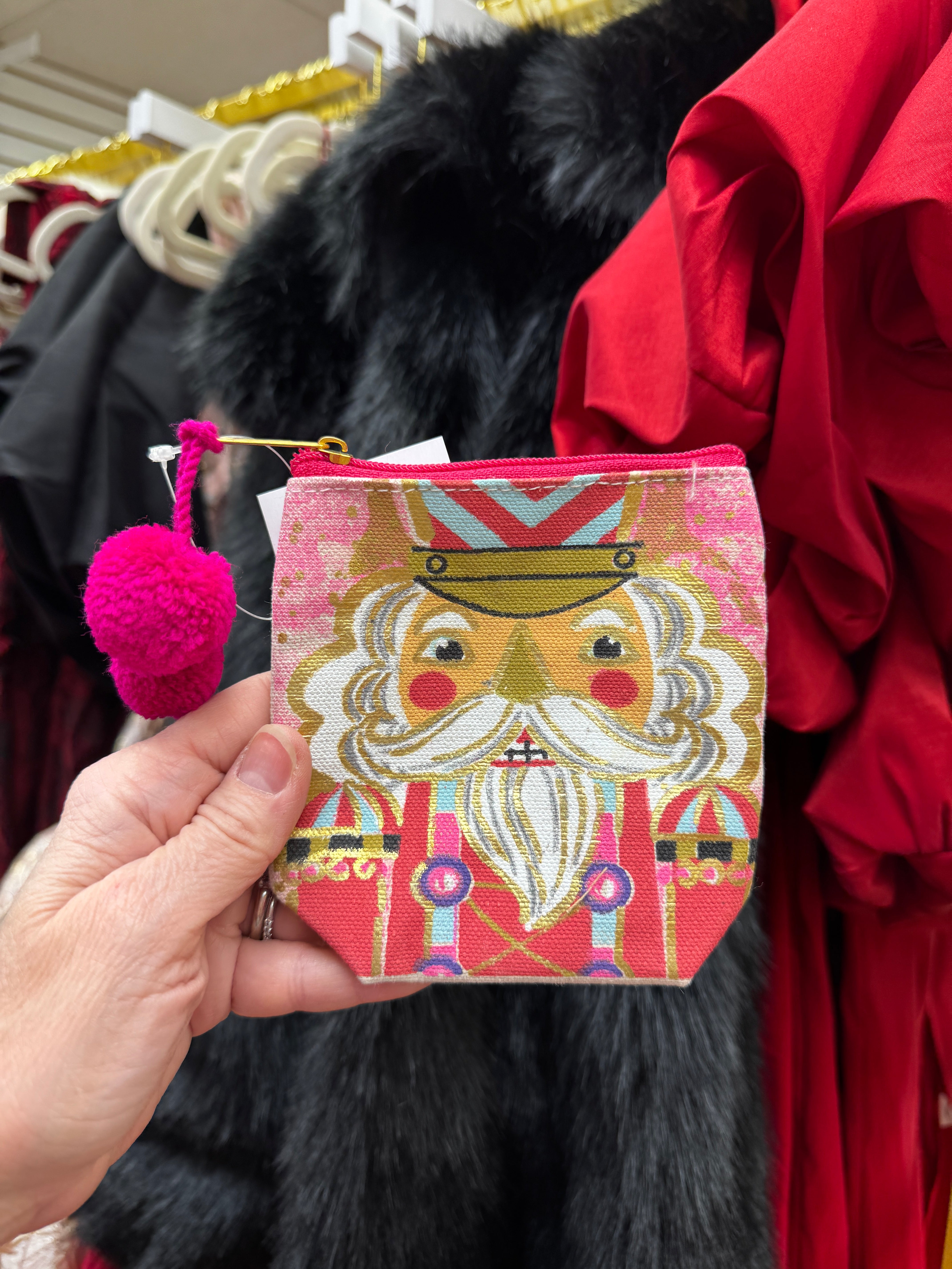 Crack open the holiday spirit with this charming Nutcracker Pouch! Perfect for tucking away gift cards, delicate jewelry, or a little spending money, this festive accessory brings whimsy to your gifting. Whether you're filling stockings or presenting a surprise, this pint-sized pouch adds a nutty touch of joy to any occasion. A delightful stocking stuffer that keeps treasures safe and smiles bright!