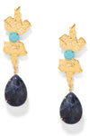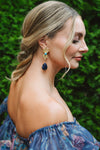 These 3” Opera Earrings dazzle with a fun floral bow sprinkled with turquoise crystals and a charming pear-shaped sapphire drop. Made in the USA with an 18k gold finish, nickel-free, and comfy surgical steel posts, they’re the perfect playful pop for any outfit!