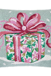 Celebrate the season with the Retro Pink Present Pillow! This 16"x16" square throw pillow features a cozy 100% wool hooked front and a soft poly velvet back, complete with a zipper closure for easy care. Filled with a plush polyester insert, it’s the perfect festive touch to brighten your holiday decor or a delightful Christmas gift to spread joy and cheer.