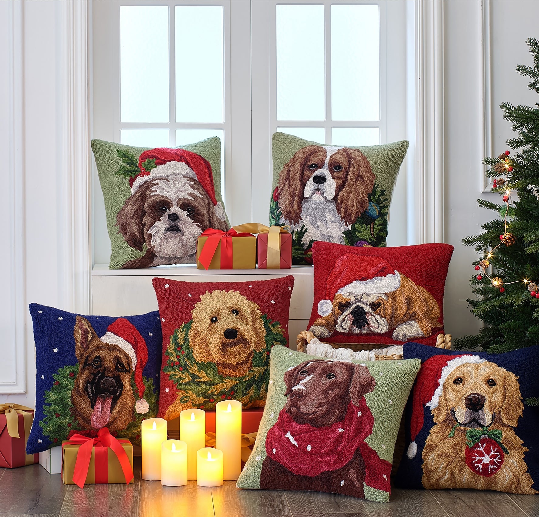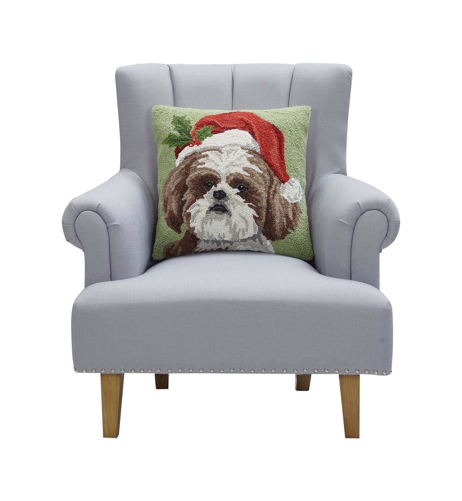 Add a dash of holiday cheer with the playful Shih Tzu Santa Pillow. Made with 100% wool hooked front and a soft 100% poly velvet back, this 18x18" pillow is cozy and festive. It comes with a polyester insert and a zipper closure for easy care. Perfect for brightening your winter décor or gifting a festive smile this holiday season!