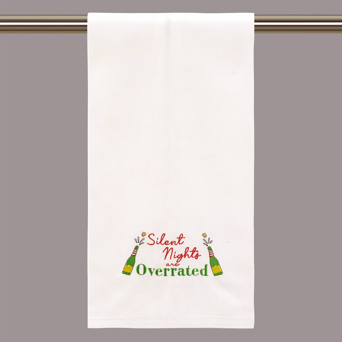 Add a festive touch to your kitchen with this 100% cotton embroidered towel featuring playful champagne bottles—perfect for holiday cheer! Measuring 16x25 inches, it’s durable enough for drying dishes or hands while brightening your space with a fun Christmas theme. Silent nights are overrated when you have this lively, multi-purpose kitchen essential on hand! Excellent for gift giving too.