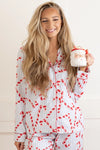 Get ready to sleigh the season in our Candy Cane Stripe PJ's! This playful flannel set combines cozy comfort with festive flair, perfect for decorating, gift wrapping, or lounging by the fire. Featuring a charming button-front top and classic striped print, these PJs bring a fun and stylish twist to your holiday traditions. Stay merry and bright while feeling effortlessly chic all season long.