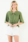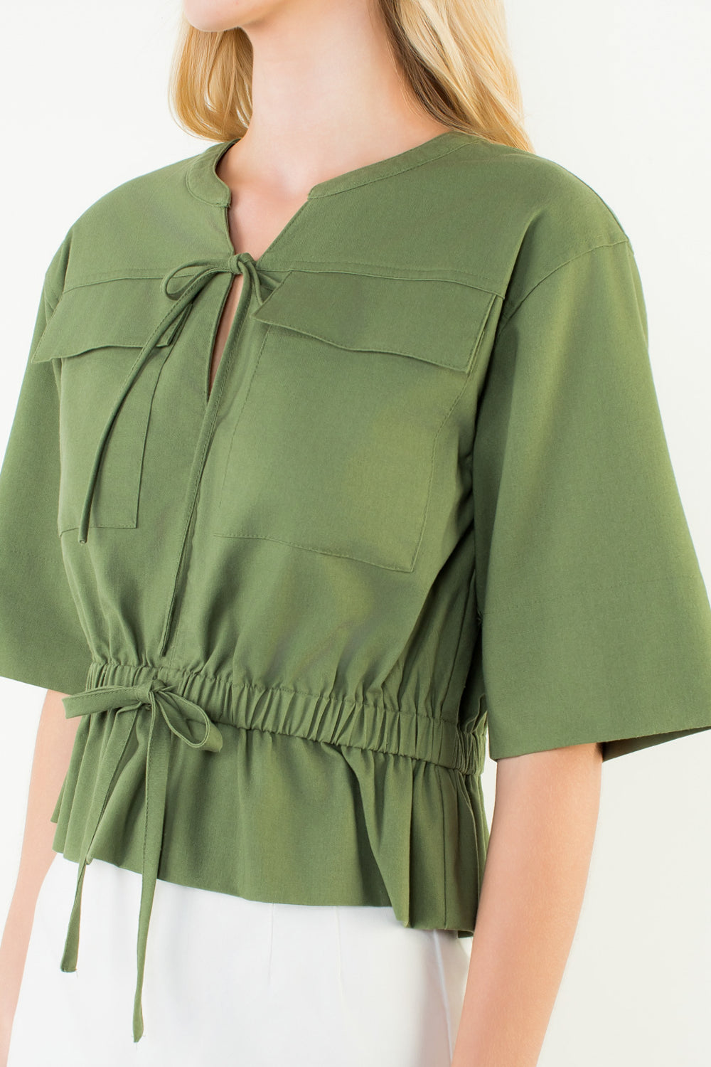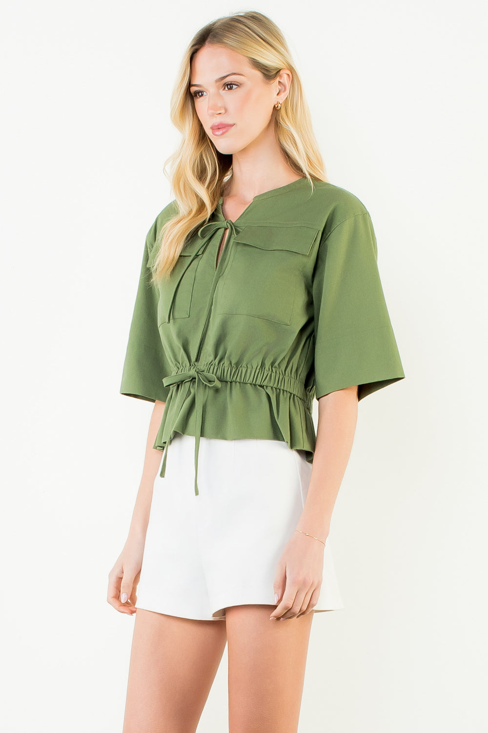 Elevate your everyday wardrobe with the versatile Cheyenne Blouse, featuring a charming tie detail at the cinched bottom that adds just the right amount of personality. Whether you're dressing up for the office or keeping it casual on the weekend, this green top works overtime in your closet. It's the kind of piece that feels effortlessly put-together while keeping comfort front and center. This blouse is about to become your go-to favorite!