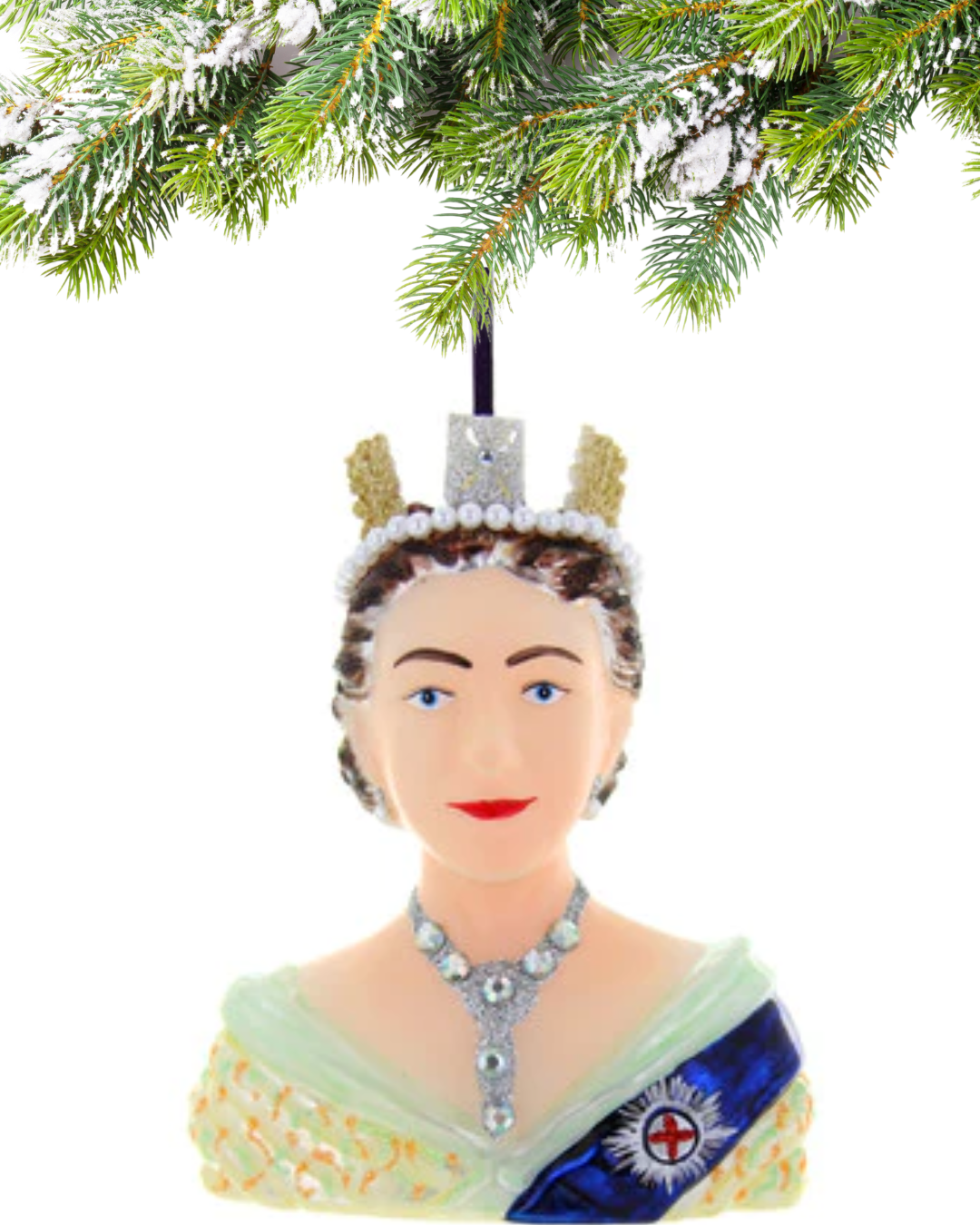 The queen has arrived! This young Queen Elizabeth glass ornament from Cody Foster is a must have for any royal family fan. She comes in a box that is perfect for gifting.